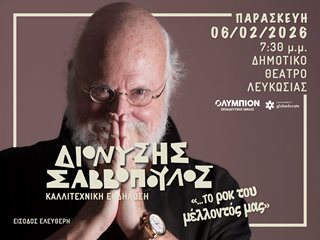 Καλλιτεχνική εκδήλωση αφιερωμένη στον Διονύση Σαββόπουλο παρουσιάζει στο Δημοτικό Θέατρο Λευκωσίας, ο Εκπαιδευτικός Όμιλος ΟΛΥΜΠΙΟΝ, την Παρασκευή 6 Φεβρουαρίου 2026, στις 19:30.