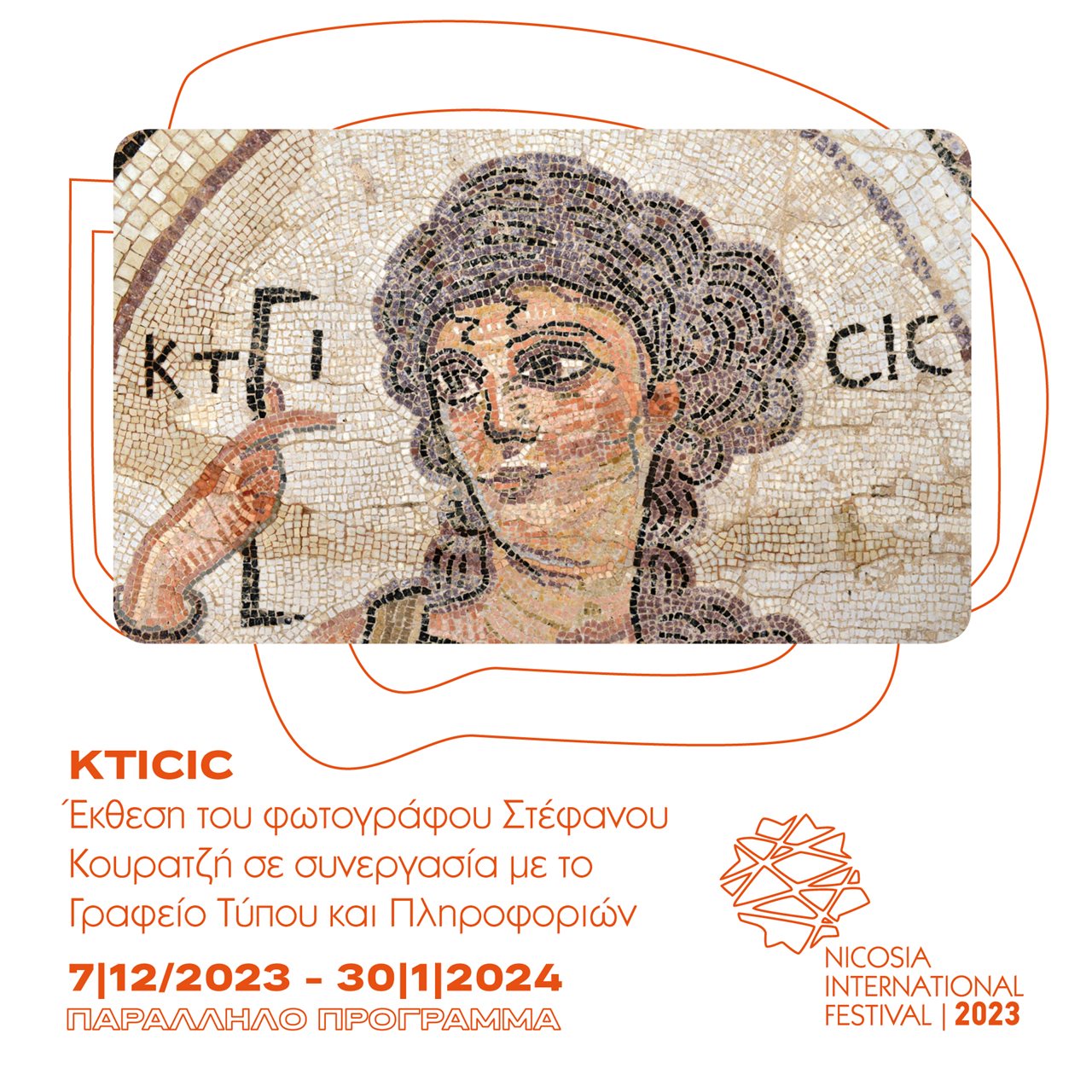 Σε συνέχεια της επιτυχούς παρουσίασης της φωτογραφικής έκθεσης «ELLE», τόσο στο Διεθνές Φεστιβάλ Λευκωσίας 2022 όσο και στο εξωτερικό, το Γραφείο Τύπου και Πληροφοριών διοργανώνει τη φωτογραφική έκθεση με τίτλο «ΚΤΙΣΙΣ» (KTICIC), η οποία παρουσιάζεται από τις 7 Δεκεμβρίου 2023, στο Δημοτικό Θέατρο Λευκωσίας, στο πλαίσιο του Διεθνούς Φεστιβάλ Λευκωσίας 2023.