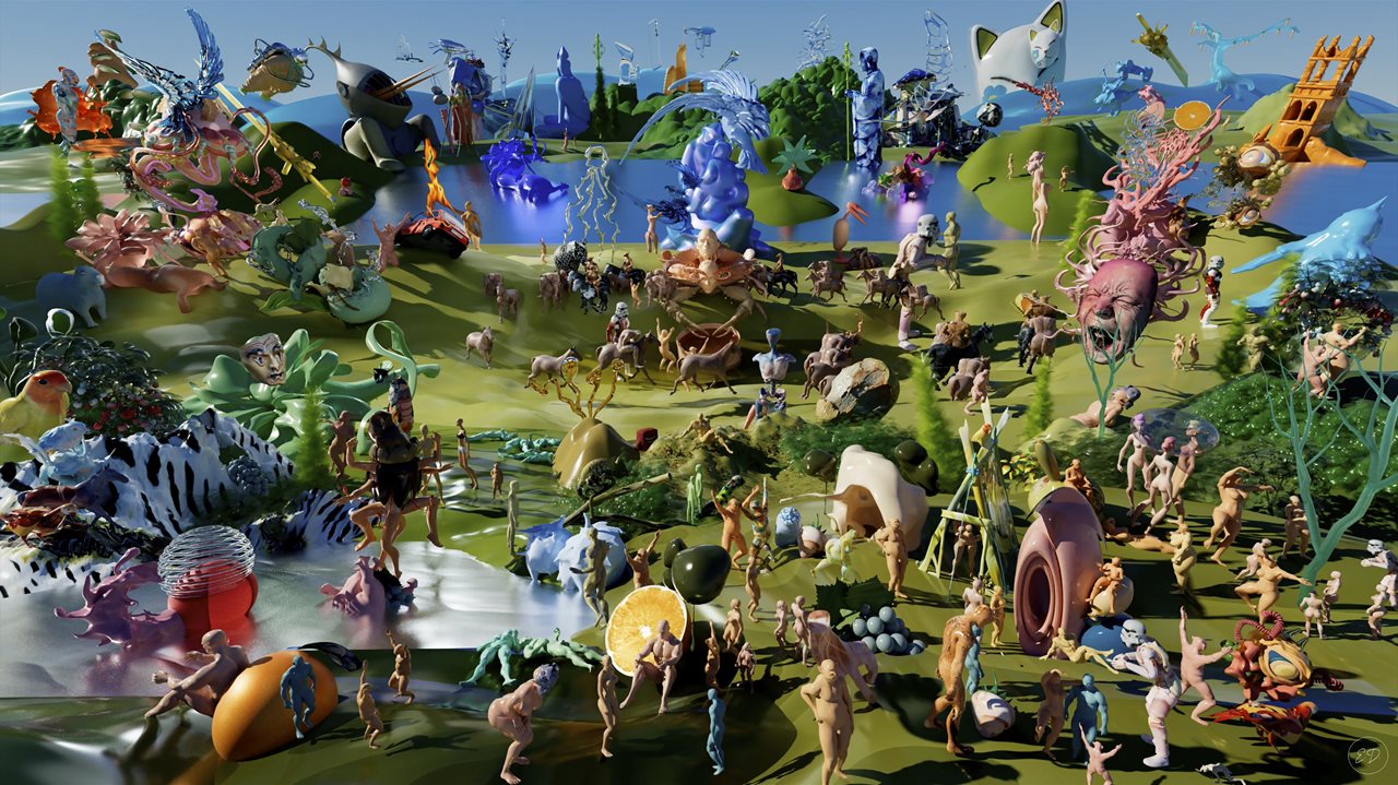 Μέσω νέων τεχνολογικών λογισμικών και ΑΙ προγραμμάτων, η Εριφύλη Δουκέλη δημιουργεί τρισδιάστατα ψηφιακά τοπία, προσπαθώντας να ταξινομήσει την αφθονία δεδομένων, πληροφοριών και εικόνων που κατακλύζουν τις οθόνες μας. Ως το κύριο πλέον ανθρώπινο λογισμικό, η οθόνη καθορίζει τις σχέσεις μας - με τον εαυτό μας, με τους άλλους, με το περιβάλλον μας. Ωστόσο, η Δουκέλη επιτρέπει τη δημιουργία μικρόκοσμων, όπου υβριδικές φιγούρες, συμμορίες πολύχρωμων φίλων, μπορούν να ασκούνται, να χορεύουν και να αλληλεπιδρούν μεταξύ τους. Αυτό το παζλ πολυπλοκότητας προσομοιώνει ένα κοινωνικό πλαίσιο, ζητώντας χώρο και χρόνο για όλες τις εκδοχές του άβαταρ κάθε ατόμου.