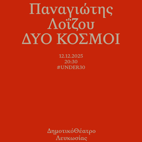 Ένας αυτοδίδακτος ερμηνευτής και τραγουδοποιός έρχεται στο Διεθνές Φεστιβάλ Λευκωσίας 2025 και φέρνει στη σκηνή μια ακατέργαστη πηγαία αυθεντικότητα που αντηχεί βαθιά στον ακροατή. Ο Παναγιώτης Λοΐζου είναι η απόδειξη ότι η μουσική δεν χρειάζεται διαπιστευτήρια – χρειάζεται ανάγκη, τόλμη, αυθεντικότητα και αλήθεια. Στο Διεθνές Φεστιβάλ Λευκωσίας παρουσιάζει τον πρώτο προσωπικό δίσκο με τίτλο «Δύο Κόσμοι», την Παρασκευή 12 Δεκεμβρίου 2025, στο Δημοτικό Θέατρο Λευκωσίας (20:30), στο πλαίσιο του προγράμματος #UNDER30.