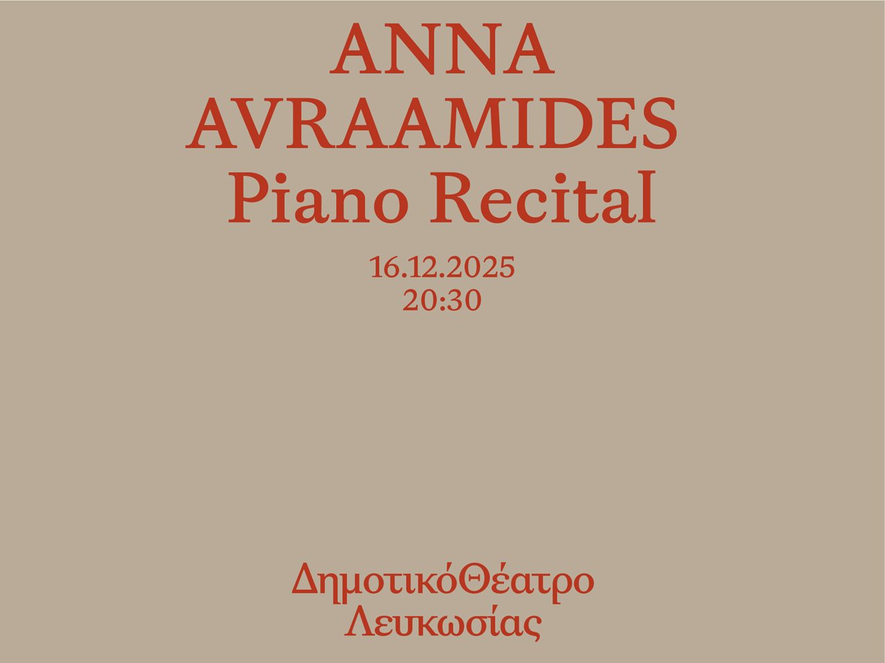 The Nicosia International Festival 2025 hosts for the second time the young and gifted pianist Anna Avramidou, who first appeared at the Nicosia International Festival 2021. Anna returns this time, with the aura of an artistically mature and internationally acclaimed artist, on Tuesday, 16 December 2025, at the Nicosia Municipal Theatre (20:30).