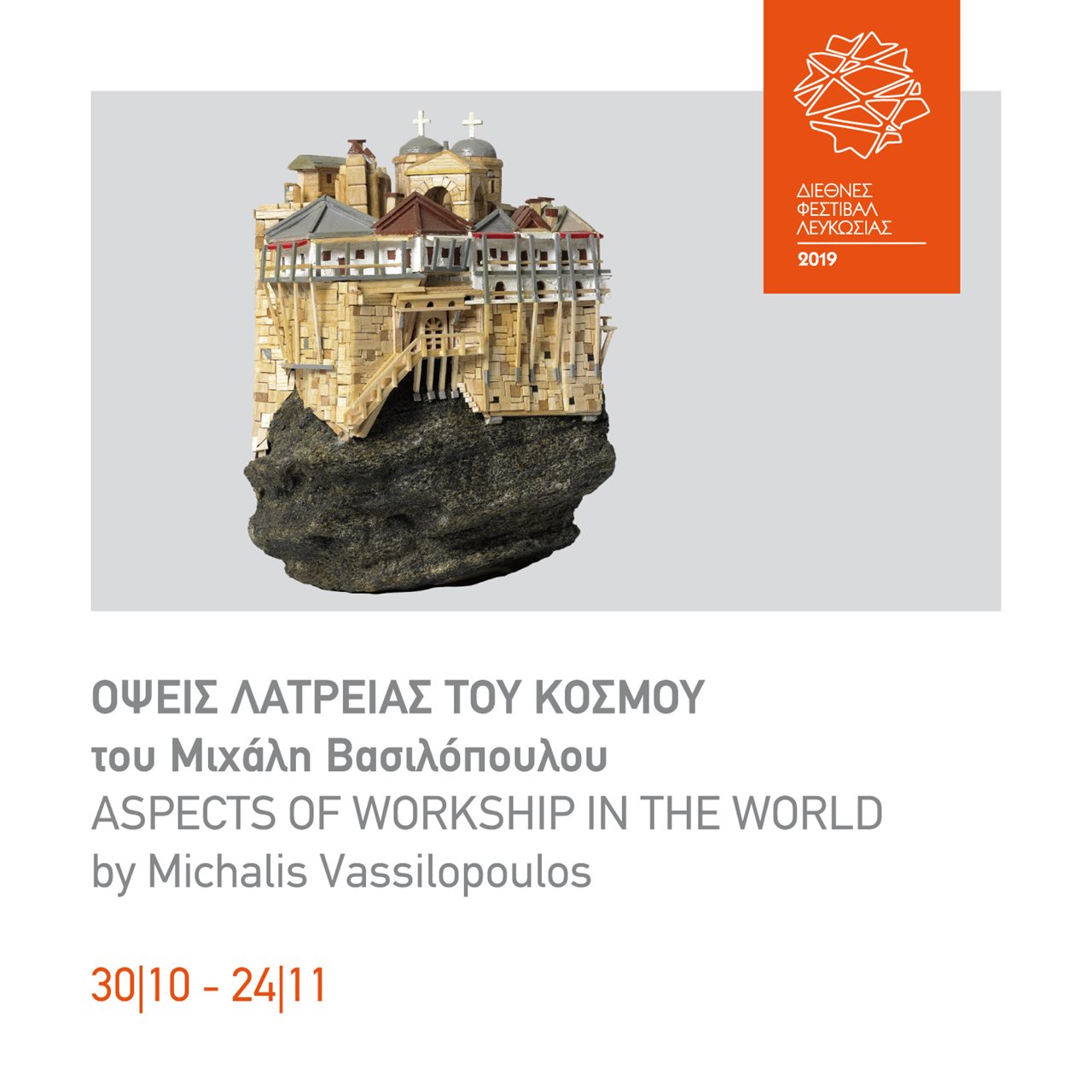 Στο φουαγιέ του Δημοτικού Θεάτρου Λευκωσίας έχει στηθεί (για την περίοδο από τις 30 Οκτωβρίου έως τις 24 Νοεμβρίου 2019) έκθεση με αρχιτεκτονικές μακέτες του Μιχάλη Βασιλόπουλου με τίτλο Όψεις Λατρείας του Κόσμου. Η έκθεση περιλαμβάνει αρχιτεκτονικές μακέτες, πιστά αντίγραφα υπό κλίμακα κτισμάτων θρησκευτικής λατρείας από την αρχαιότητα μέχρι σήμερα. Στο χώρο της έκθεσης θα συνυπάρξουν η Αγία Φωτεινή της Τρίπολης, η ρωσική Μονή του Αγίου Παντελεήμονος, το τζαμί στο Μοναστηράκι, το Κουρσούμ τζαμί στα Τρίκαλα, ο ναός του αρχαίου θεού Ήφαιστου, το Θησείον και άλλοι τόποι λατρείας, άλλων θρησκειών. Οι τόποι αυτοί θα περιβάλλουν τη μία και μοναδική Αγία Σοφία της Κωνσταντινούπολης, η οποία για πρώτη φορά βγαίνει από το εργαστήριο του καλλιτέχνη και παρουσιάζεται στο κοινό.