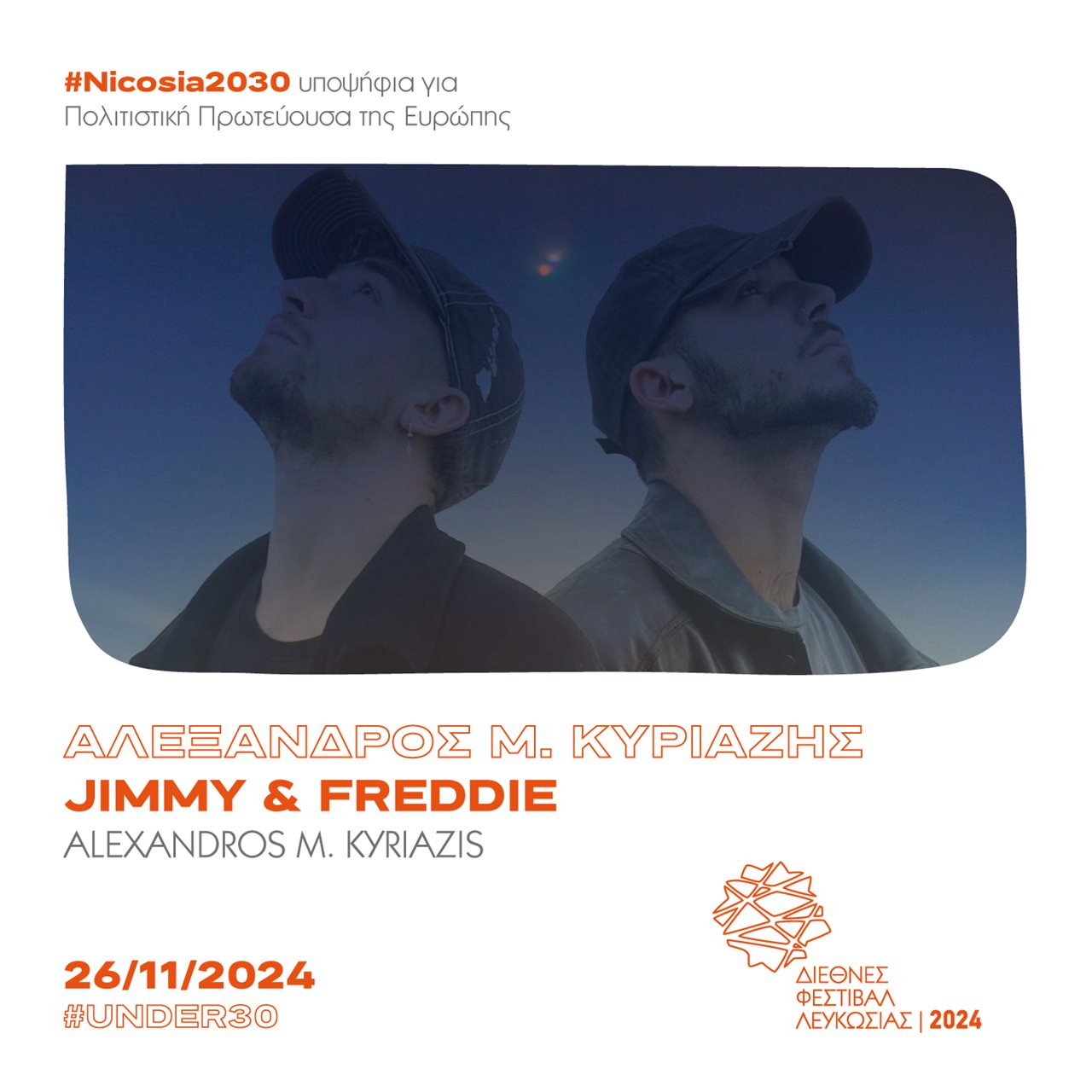 Η Λευκωσία 2030, υποψήφια για Πολιτιστική Πρωτεύουσα της Ευρώπης, συνεχίζει την προβολή νέων δημιουργών, στο πλαίσιο του προγράμματος #UNDER30, με την παράσταση του Αλέξανδρου Μ. Κυριαζή, «Jimmy & Freddie». Η επίσημη πρώτη του έργου του Κύπριου χορογράφου θα δοθεί στο Αμβούργο στις 23 Νοεμβρίου 2024 με επόμενο σταθμό την Κύπρο και το Δημοτικό Θέατρο Λευκωσίας στις 26 Νοεμβρίου 2024 (20:30). Για τον σκοπό της παράστασης, ο χορογράφος και χορευτής Αλέξανδρος Μ. Κυριαζής μοιράζεται τη σκηνή με τον Γερμανό χορευτή Victor Aaron Bolzmann.