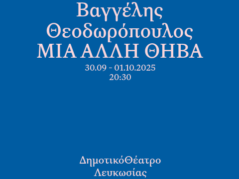 Η παράσταση - φαινόμενο των τελευταίων ετών στην Αθήνα, «Μια άλλη Θήβα», συνεχίζει το ταξίδι της στο Διεθνές Φεστιβάλ Λευκωσίας 2025, μετά από τρεις συνεχόμενες sold out σεζόν στο Θέατρο του Νέου Κόσμου, με πάνω από 200.000 θεατές και διθυραμβικές κριτικές. Η σκηνοθεσία του Βαγγέλη Θεοδωρόπουλου ζωντανεύει το έργο του Σέρχιο Μπλάνκο, φέρνοντας στη σκηνή μια συγκλονιστική σύγχρονη σπουδή πάνω στην πατροκτονία, τη βία, την ενοχή, τη μετάνοια και τη μεταμόρφωση μέσω της τέχνης. Θα δοθούν δύο παραστάσεις, την Τρίτη 30 Σεπτεμβρίου και την Τετάρτη 1