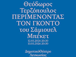 Η ιταλική παραγωγή του Emillia Romagna Teatro «Περιμένοντας τον Γκοντό» του Σάμιουελ Μπέκετ έρχεται στις 12 & 13 Μαρτίου 2026 (20:30), στο Δημοτικό Θέατρο Λευκωσίας. Η παράσταση εντάσσεται στο πλαίσιο του Διεθνούς Φεστιβάλ Λευκωσίας 2025, καθώς είχε αναβληθεί λόγω ασθένειας ενός εκ των πρωταγωνιστών.