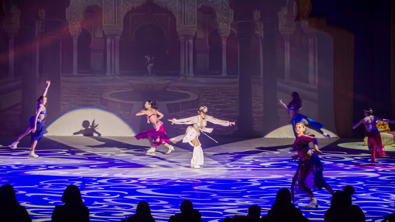 The mastery of ice genre artists, the power of speed and the energy of ice skating, uniquely combining ethnic and modern motifs of oriental music and Oriental sensual choreography, will recreate in front of the audience more than 1000 years old legend. The combination of cold ice and hot oriental passions, along with thematic 3D scenery and large-scale video installations, will transport the audience to the era of the Ancient East. The audience will be treated to a feast for the eyes and soul with luxurious costumes and oriental dances.