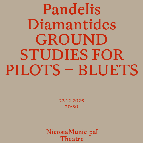 The Nicosia International Festival 2025 presents a theatrical performance with video projection by the internationally acclaimed artist and electronic music composer Pandelis Diamantides. The performance, titled “Ground Studies for Pilots – Bluets”, will be presented for the first time on Tuesday, 23 December 2025, at the Nicosia Municipal Theatre (20:30).